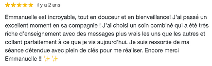 Le soin énergétique complète à merveille ce massage car il permet de travailler en profondeur sur les émotions cristallisées et stimuler la circulation de l'énergie dans tout le corps, lui offrant ainsi un regain de vitalité. Il s'agit d'une "vidange" des énergies usagées présentes dans vos roues énergétiques (les chakras). Vous bénéficiez également d'une Guidance personnalisée : ce sont les messages de votre corps et de votre Âme, véritables outils d'élévation de conscience pour un mieux-être véritable.